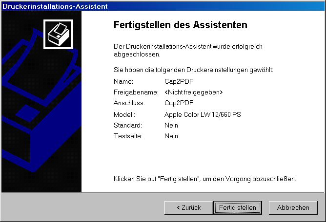 - Einrichten des Cap2PDF Druckers (Win2000)